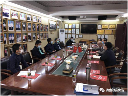 2月19日上午,海南省農業農村廳劉忠松副廳長,在文昌市委副書記黃紹明、副市長符策萬等陪同下,蒞臨海南勤富食品有限公司視察企業復工復產和疫情防控工作。勤富公司董事長周勤富、副董事長周云峰等公司領導全程陪同。