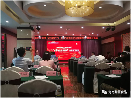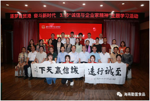 為了深入學習貫徹習近平總書記在企業家座談會上的講話精神,引導市場主體誠信自律,增強企業家誠信與責任擔當,助力海南自貿港營商環境改善和自貿港高質量發展,3月15日下午,海南省誠信企業協會在海口市賽侖吉地酒店舉辦以“逐夢自貿港 奮斗新時代”3?15“誠信與企業家精神”為主題的學習活動,我司周勤富董事長應邀在活動中作了“樹立誠信企業品牌助力海南自貿港建設”的主題演講,和與會企業家分享交流了我司誠信企業的具體做法和體會。