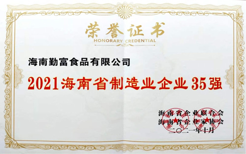 10月26日,由海南省企業(yè)聯(lián)合會(huì)、海南省企業(yè)家協(xié)會(huì)聯(lián)合主辦的“2021年海南省企業(yè)100強(qiáng)發(fā)布會(huì)”在海口隆重舉行。在本次評(píng)選中,海南勤富食品有限公司位列海南省制造業(yè)企業(yè)第35強(qiáng)。