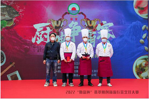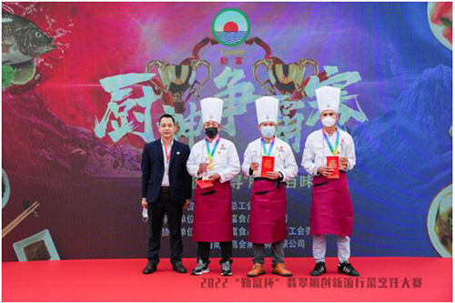 本次大賽,共設(shè)金獎1名,銀獎2名,銅獎3名,創(chuàng)意獎3名,特色菜品獎3名。最終,通過激烈競爭,李建浩榮獲金獎;肖雄、唐文榮獲銀獎;林聲揚、劉裕銘、蔡表旭榮獲銅獎;宋愛強、王上澤、曾垂英榮獲創(chuàng)意獎;吳康、王楊芬、徐建平榮獲特色菜品獎。