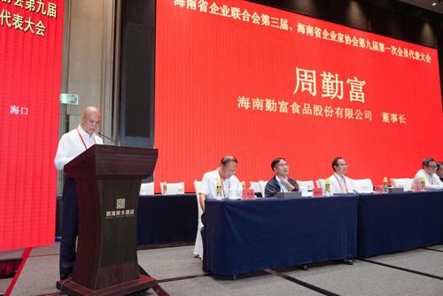 2025年8月30日上午,海南省企業聯合會第三屆、海南省企業家協會第九屆第一次會員代表大會暨2025海南省企業100強發布會在海口西海岸大酒店隆重舉行。本次會議匯聚了海南自貿港建設的領軍企業、政府領導、專家學者及媒體代表,旨在推動企業高質量發展,展現海南經濟新成就。海南勤富食品股份有限公司(以下簡稱“勤富公司”)董事長周勤富作為海南省企業聯合會執行會長,在會上擔任重要角色,宣讀大會決議,并代表公司接受制造企業50強的榮譽。周勤富董事長的發言,展現了勤富人的拼搏精神與責任擔當,贏得了全場贊譽。